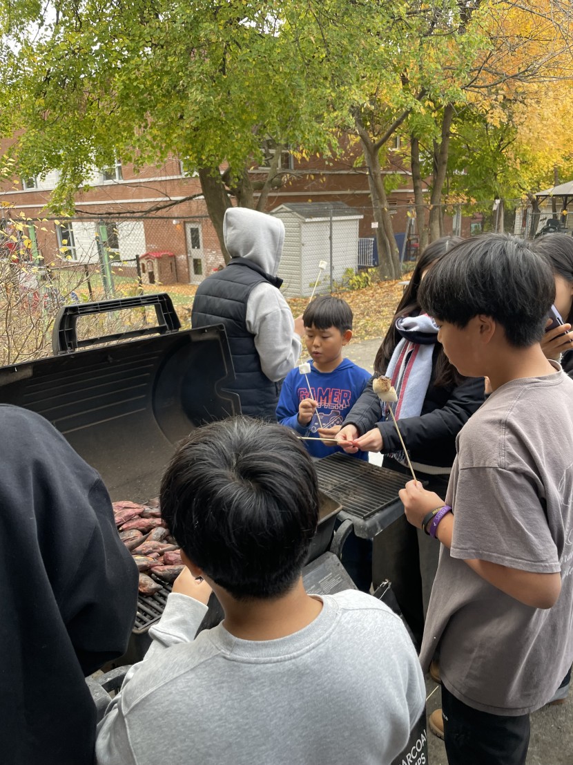 아이들과 함께 먹는 군고구마와 마시멜로